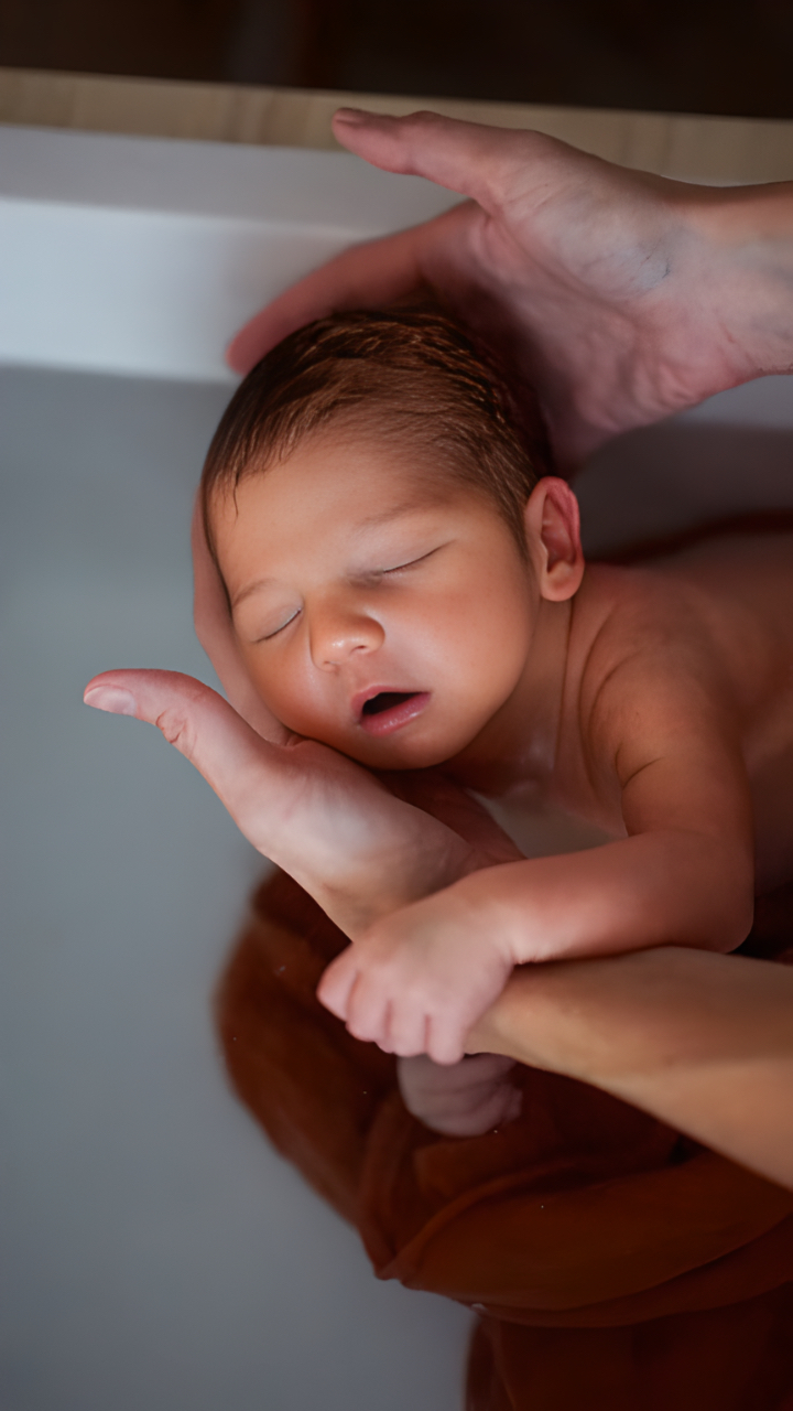 A la naissance, il expérimente pour la première fois le monde aérien extérieur. Le bain enveloppé, aussi appelé relaxation aquatique, vise à apporter bien-être et détente à votre bébé. Bercé au creux de vos mains, il pourra ainsi replonger dans un milieu contenant et rassurant qu’il connaissait tant avant sa naissance.